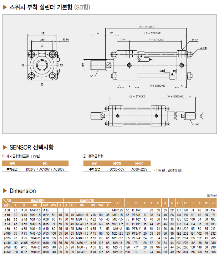스위치 부착 실린더 기본형(SD형)